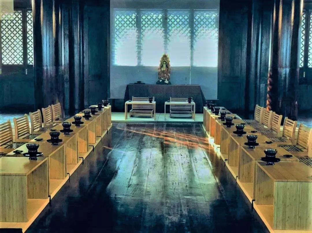 径山寺不仅茶风甚盛,每逢春季,还会举行茶宴供佛法僧,并有一套仪规。进行时,先由主持法师亲自"调茶",而后"献茶",再后则谈论茶品,寓禅于茶,理事并圆。