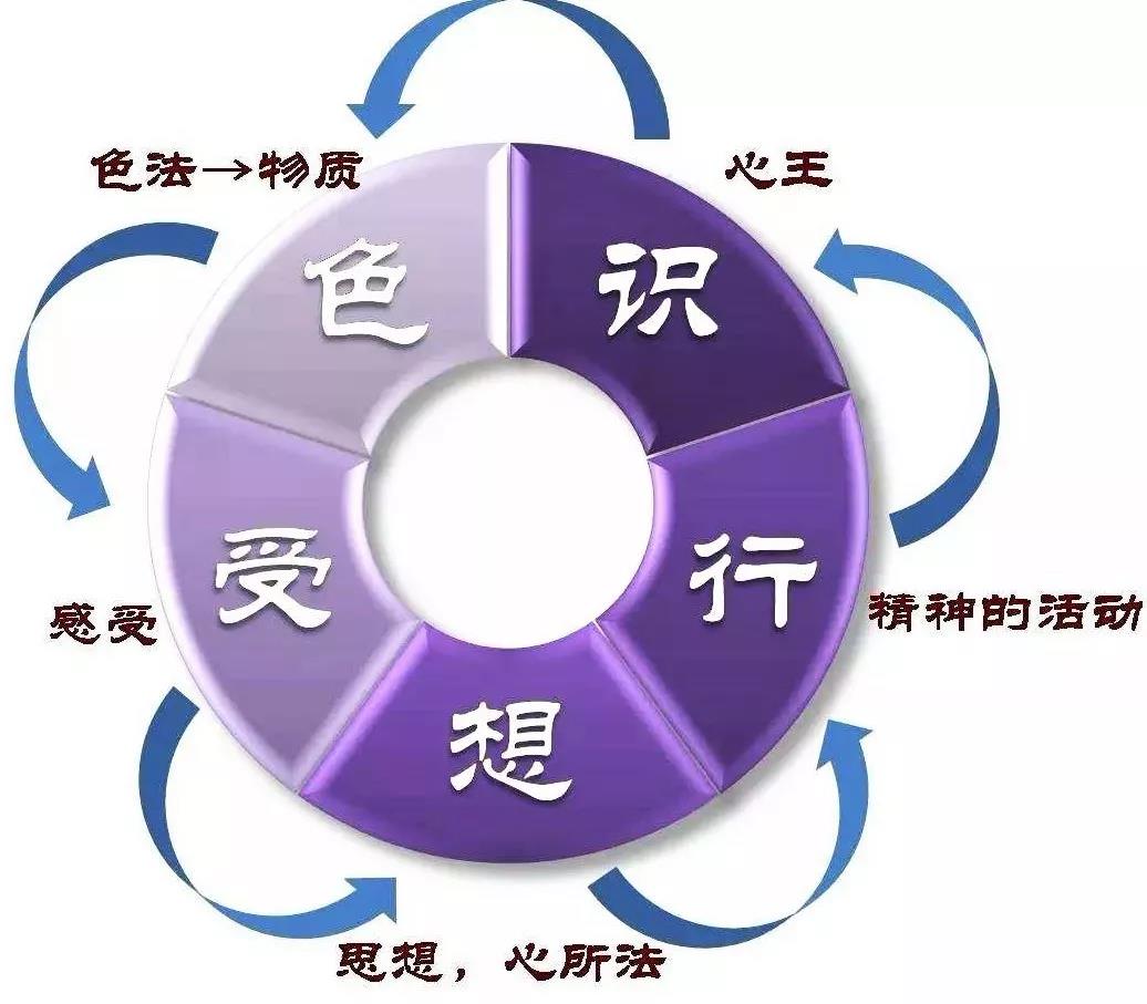 五蕴理论实际上是佛教关于人体和其身心现象都是由哪些要素构成的理论。五蕴的"蕴"是梵文的音译,意义是积聚或者和合。佛教认为世间一切事物都是由五蕴和合而成,一人的生命个体也是由五蕴和合而成的。