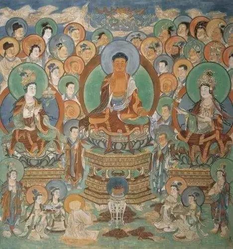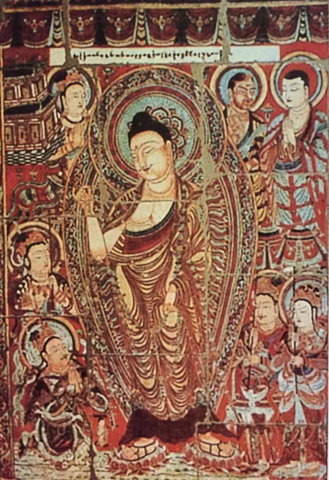 燃灯国王手举百幅宝伞,率领各持宝伞的大臣们,具财子国王也带领八万眷属一起前往迎请燃灯佛,在佛前顶礼合掌祈求:‘恭请世尊及比丘们光临我王宫应供。’
