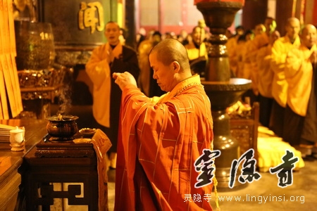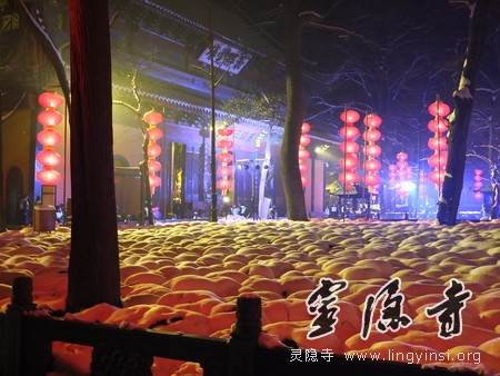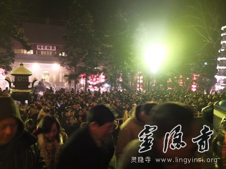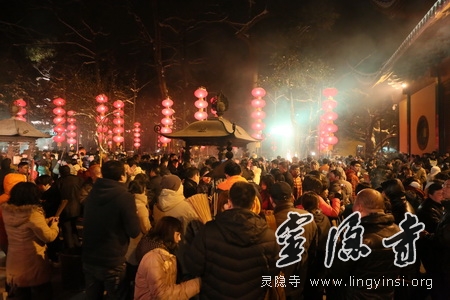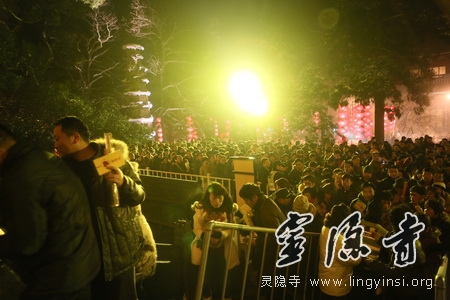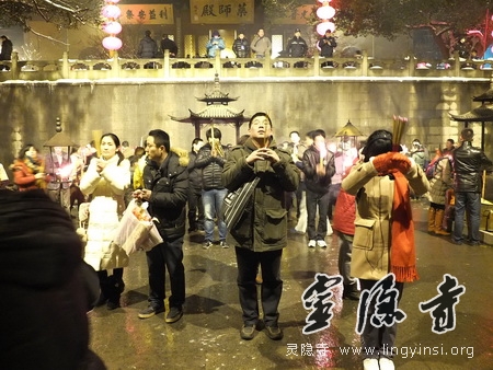 2013年2月9日晚,是中国传统节日中最隆重的除夕之夜,灵隐寺内,8000位不畏寒冷、从各地赶来的香客信众,烧头香礼佛,共同为新的一年祈福。寺内还举行了祈福法会和听新年钟声的活动。