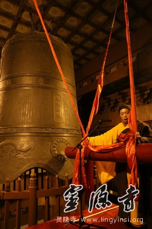 11点半,伴随着撞钟师父清越的《晨钟偈》梵唱,灵隐寺悠扬的新年钟声开始响起,为香客信众们带来了一股宁静、肃穆和超然于物外、涤荡于心灵的祥和气氛。