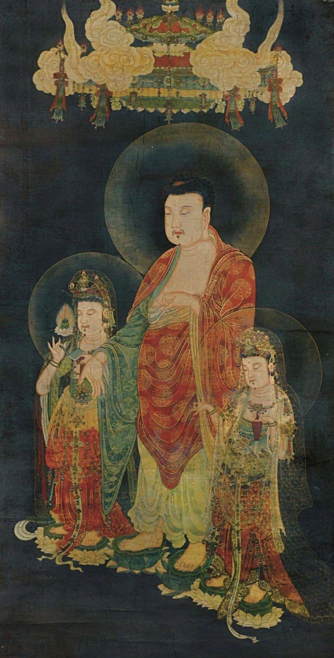 无量寿佛化身无数,与观世音及大势至,常来至此,行人之所。