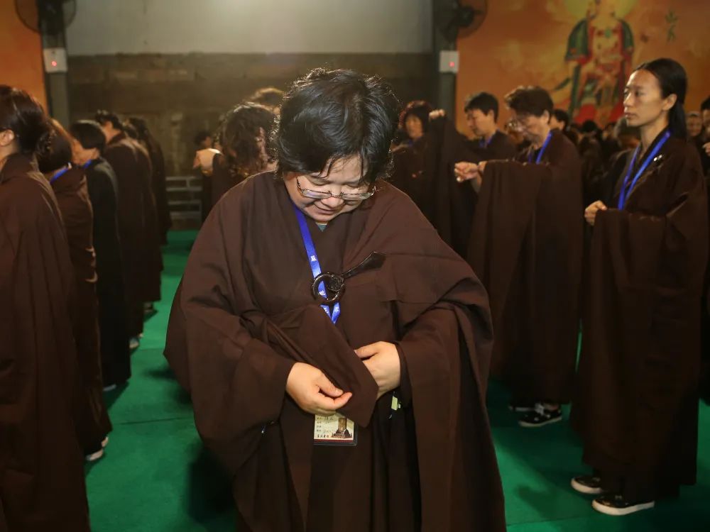 佛教传入中国后,由于气候、国情等种种因素,佛教在印度时出家人所穿着的三衣很难原样照搬到中国来,于是,传统袈裟搭配汉式海青的规制便应运而生了。此后三衣仅于礼佛、诵经或集会时,披搭于大袍之外,并依实际情况仅择一衣披搭。