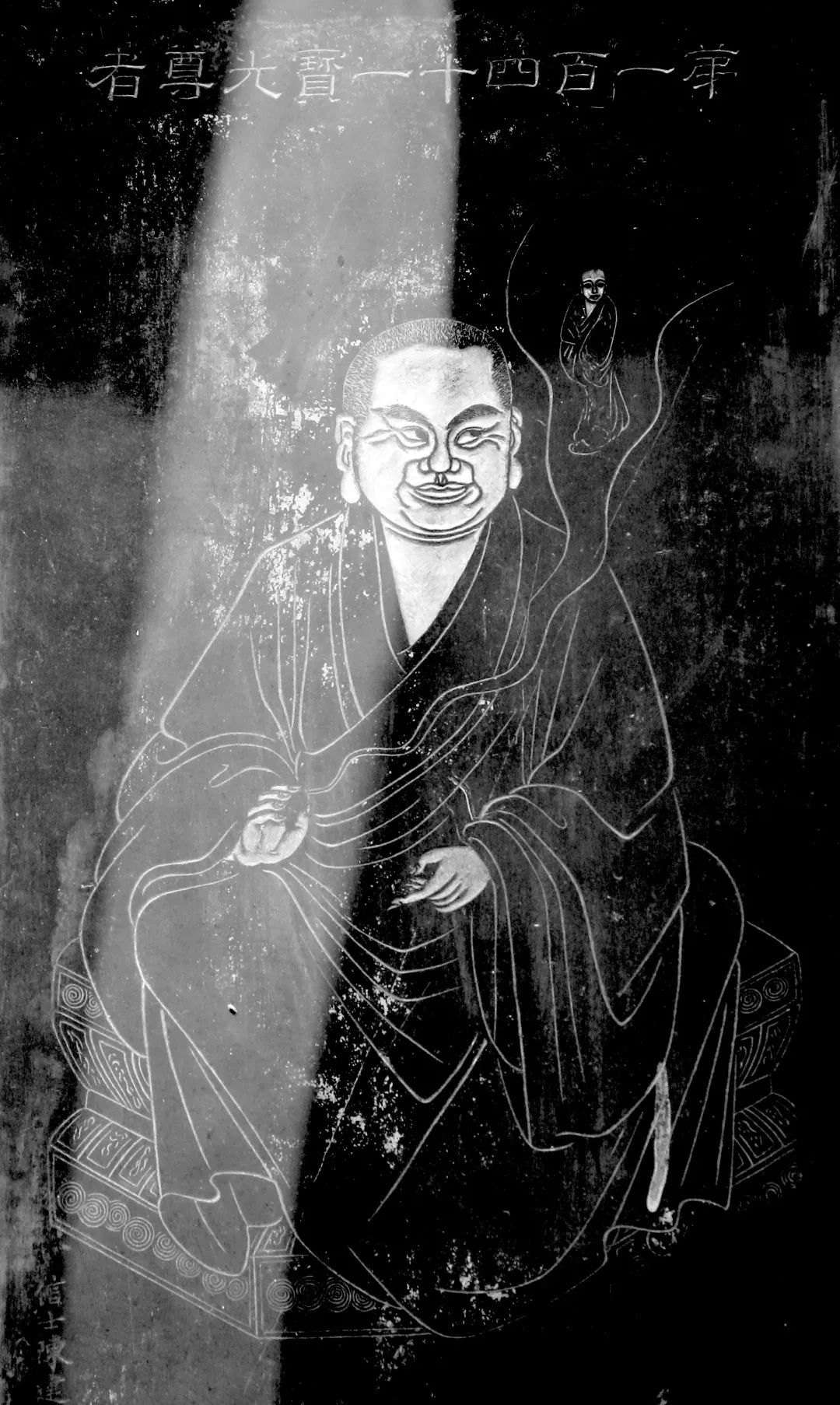 五百罗汉第壹佰肆拾壹尊宝光尊者,即宝光菩萨,具备普贤菩萨的一切品行与功德,佛光能引导众生走出黑暗,谓之宝光。