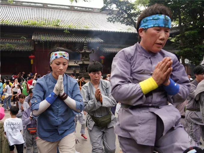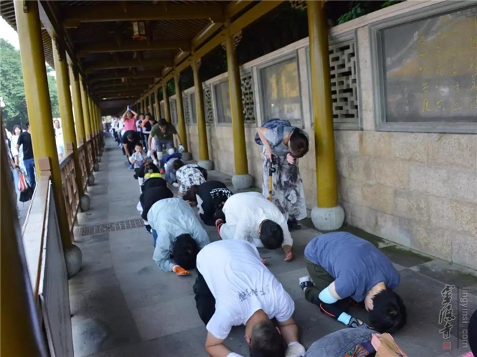 一路叩拜,一路行愿,每一个人都经受着小暑节气高温的考验。虽然汗流夹背,但坚定的信念,虔诚的愿心,坚毅的行动,激励着我们每一位师兄,朝着普济寺大圆通殿励志前行。