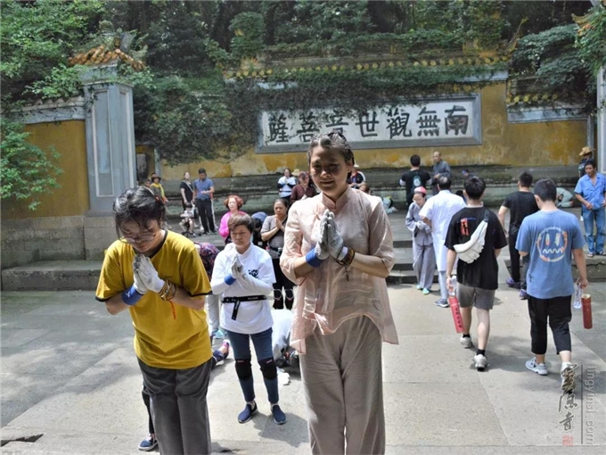由于某些原因,艺术团的六位师兄,到最后就剩下我和裘莉华、林英姿三人依然坚守在拜山行进的位置上了。我们三人自始至终都紧跟队伍,三步一拜,心中默念大慈大悲观世音菩萨的佛号。