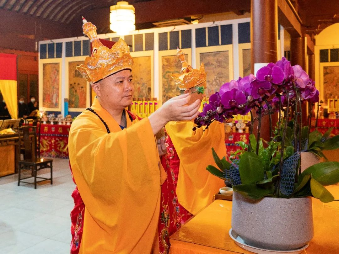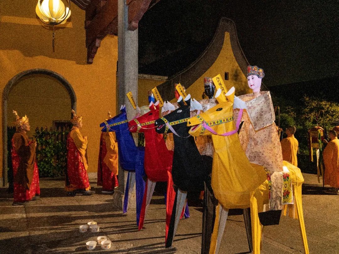 晚上18时,水陆法会第三场瑜伽焰口在直指堂施放。