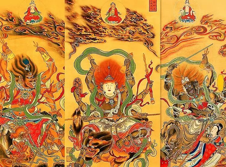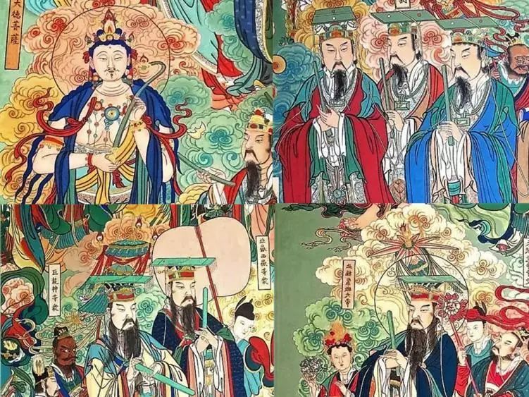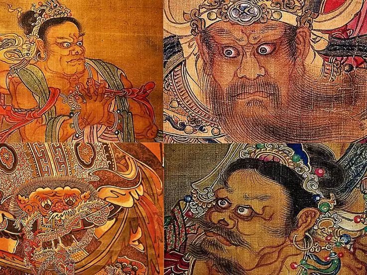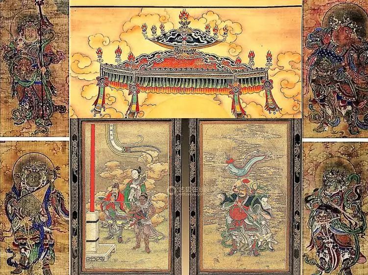 水陆画以其构图形式来说,可以分为“像”和“图”两大类。所谓“像”,是指一幅画中单独画一像,或一幅中虽画多像,其内容都只侧重于表现每一像的仪容形貌,别无他意。