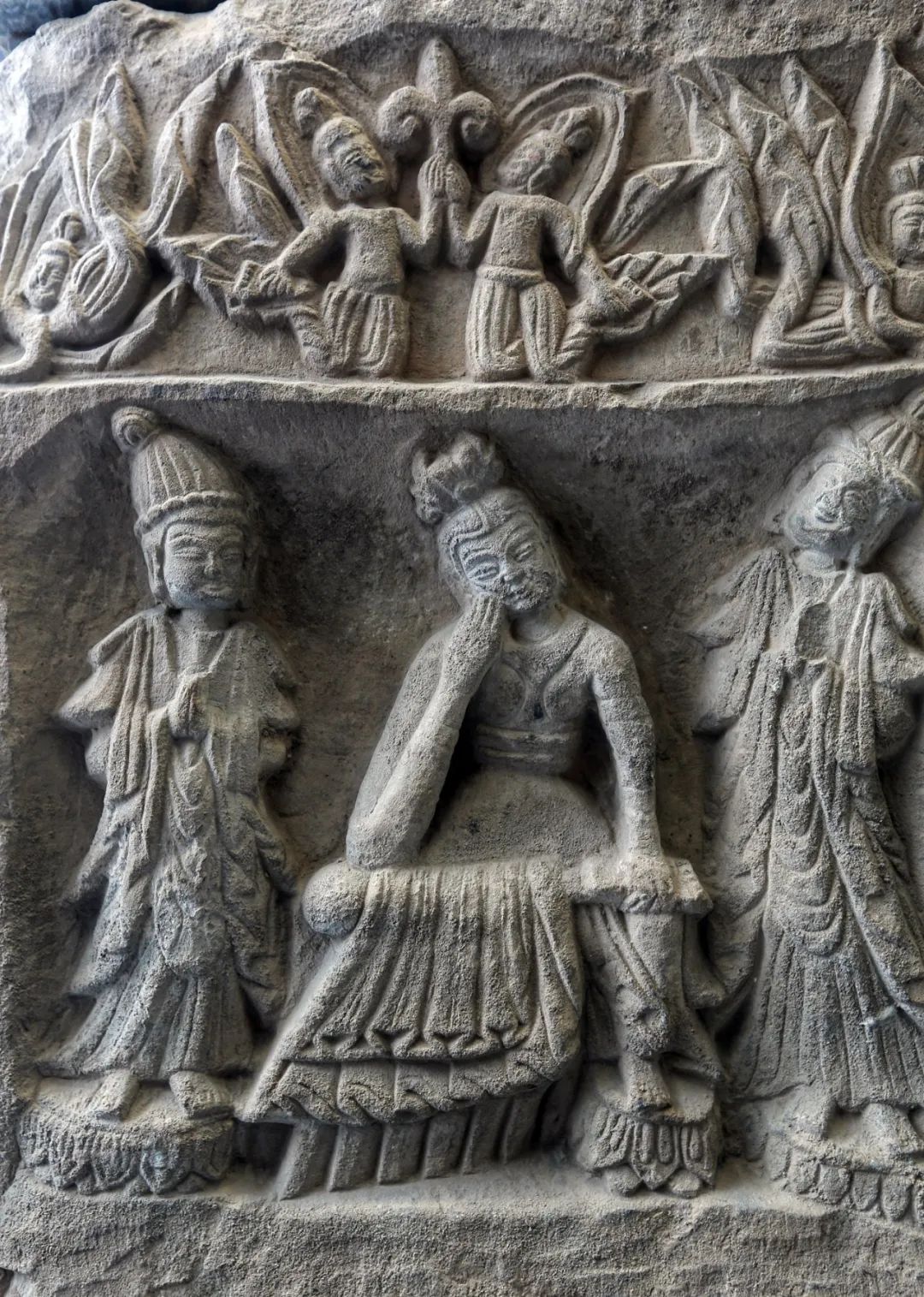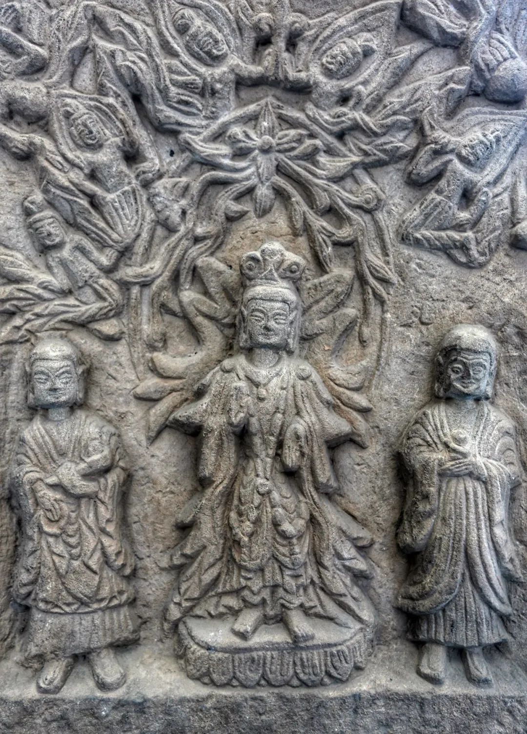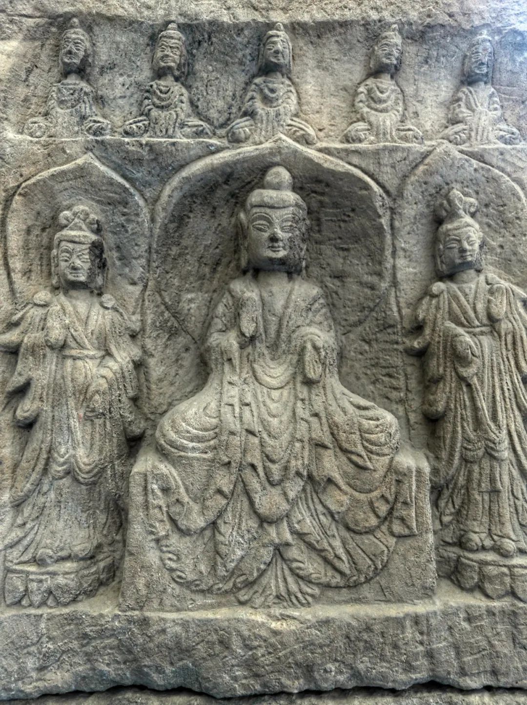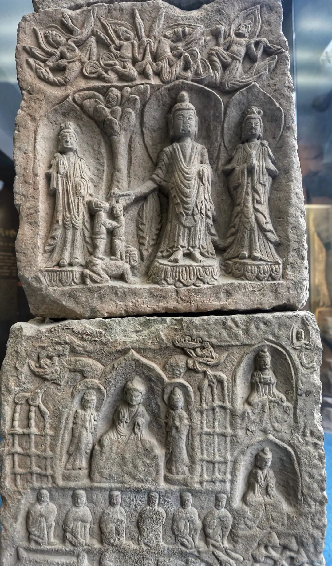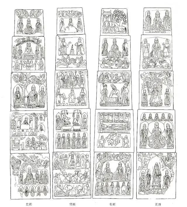 石造像塔,身呈方形,为楼阁式,由五块方石雕刻后依次叠起而立,今塔基与塔顶已遗失,仅留塔身,残高2.06米,每层每面均雕佛、菩萨、弟子、力士、飞天、供养人或佛传故事中的部分情节,具体内容如下:塔身由五块呈梯形的方石雕叠垒而成。自上而下,上小下大。原为楼阁式,今塔顶与塔基均失,仅留五级塔身。正面:第一层方形浅龛内雕一佛二菩萨像,第二层雕二佛并立说法,力土、凤鸟、人头鸟身。第三层雕菩萨、弟子、菩萨乘象、童子坐象等。第四层雕文殊、维摩跪坐辩论,二菩萨侍立。第五层雕菩萨、供养菩萨跪拜,手持团扇的侍从等。右面:自上而下分别雕佛、交脚弥勒菩萨、菩萨、佛传故事中的“树下诞生”“九龙灌顶”、“阿私陀占相”等情节,还有飞天、力土、弟子等。左边雕一佛二菩萨、二雄狮及一力士,思惟菩萨及二胁侍著萨,佛传故事中的“释迦涅槃”、释迦、多宝说法、飞天、弟子像等。背面:雕一佛二菩萨,弥勒佛及二胁侍菩萨、交脚弥勒菩萨等。造像应为北魏孝文帝改制以后的作品,是国内少见的北朝造像塔。