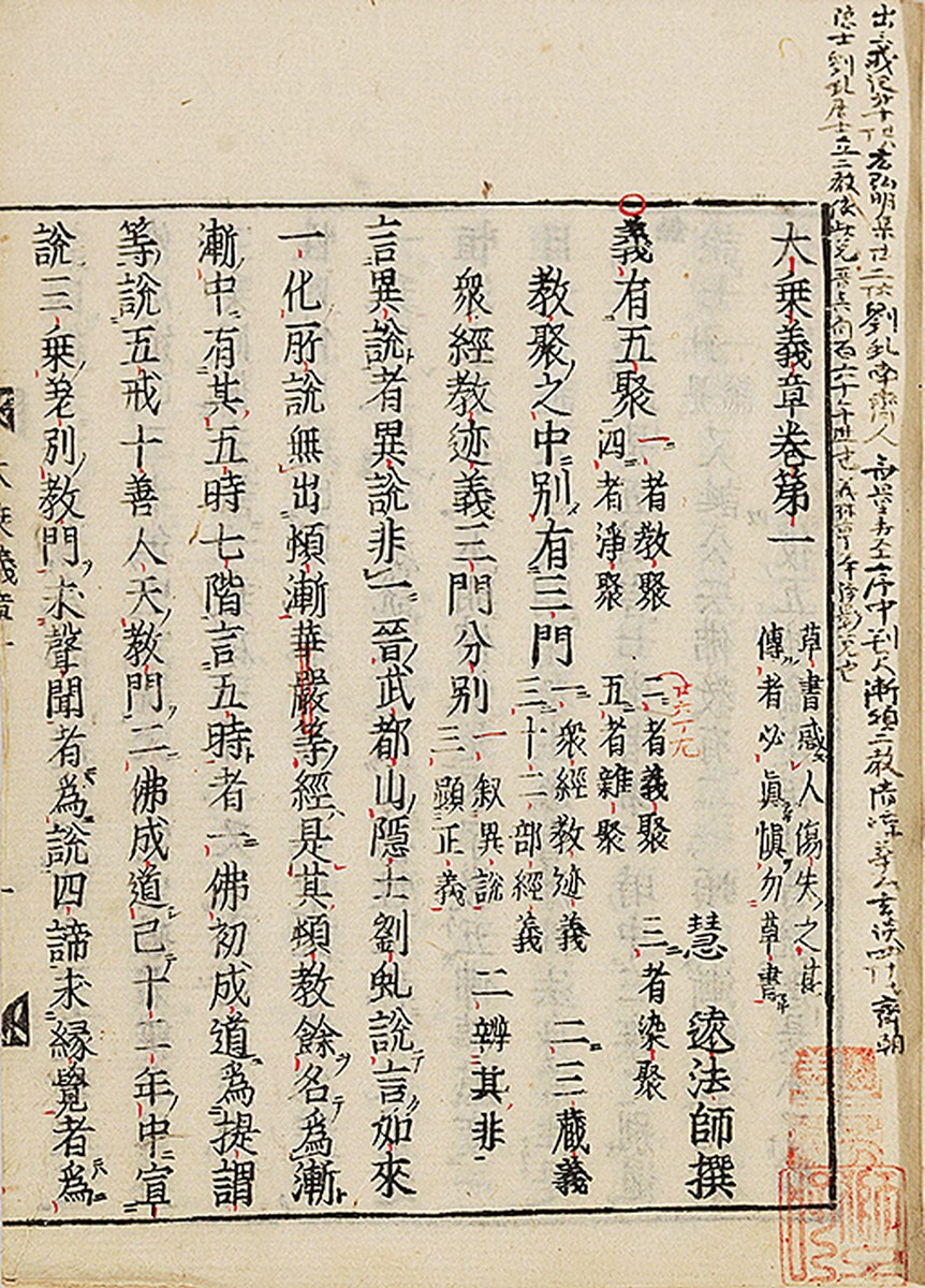 慧远(523—592)的主要学说见于所撰《大乘义章》。此书把佛教义学的大纲分作《教法聚》、《义法聚》、《染聚》、《净聚》、《杂聚》(此聚已佚)五类。每类中都是先叙《毗昙》、《成实》,然后归结到《地论》、《涅槃》。他盛弘《十地经论》。此论原系解释《华严经》中的《十地品》,所以他同时也是宗《华严》的。