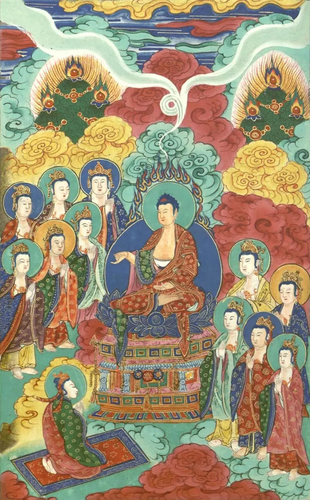 《圆觉经》上说:有一天,如来住于常寂光净土,而此平等清净的觉境,原是圣凡同一的本有家乡。此时如来现受用身,与众菩萨共同安住于佛的平等法会中。其时文殊师利菩萨首先代表众菩萨向佛请问:如来在因地时,最初如何发清净心,如何随顺法性而修行的经过,希望佛为大众开示。于是世尊说出如来大圆觉的妙理,对于如何远离如幻之无明,如何持戒离欲,如何澄寂诸念而次第修习禅定的种种重要修行方法,加以逐层说明,并且提供了克期取证的时限方便,最后净诸烦恼,悟入清净的圆觉性海。所以这一部经统摄一切佛法,周备戒定慧三学,故称为总持,是学佛者的修行指南。