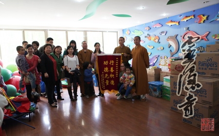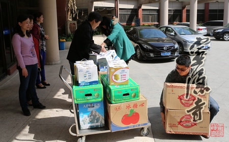 通过浙江民政康复中心张院长了解到他们的困难后,3月14日上午,在方丈光泉大和尚的关心下,我寺智忠法师、恒颂法师、见闻法师,带领云林志工团14位居士,一起到浙江民政康复中心捐赠了20箱约5000份"尿不湿"。云林志工团的法师居士们还特意为孩子们带去了他们爱吃的苹果、香蕉等水果及糕点、牛奶等零食。