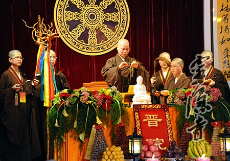 晋院法会结束后,举行了隆重的庆典。杭州市政府副市长张建庭,省民宗委副主任倪忠扬,市政协副秘书长、市民宗局局长郭清晔,省佛协会长怡藏大和尚,市佛协会长、灵隐寺方丈光泉大和尚等分别在庆典上致辞。