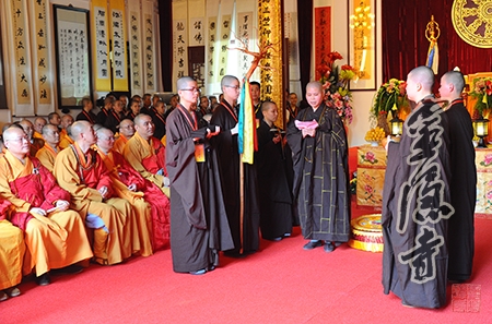 重庆华严寺方丈道坚大和尚为智圆法师授锡杖,