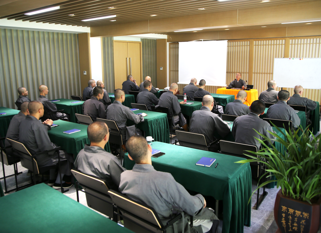 全寺僧众分三批参加培训。培训内容涵盖了政治、历史、政策法规和佛教戒律等,提升僧众的宗教修为和人文素养。