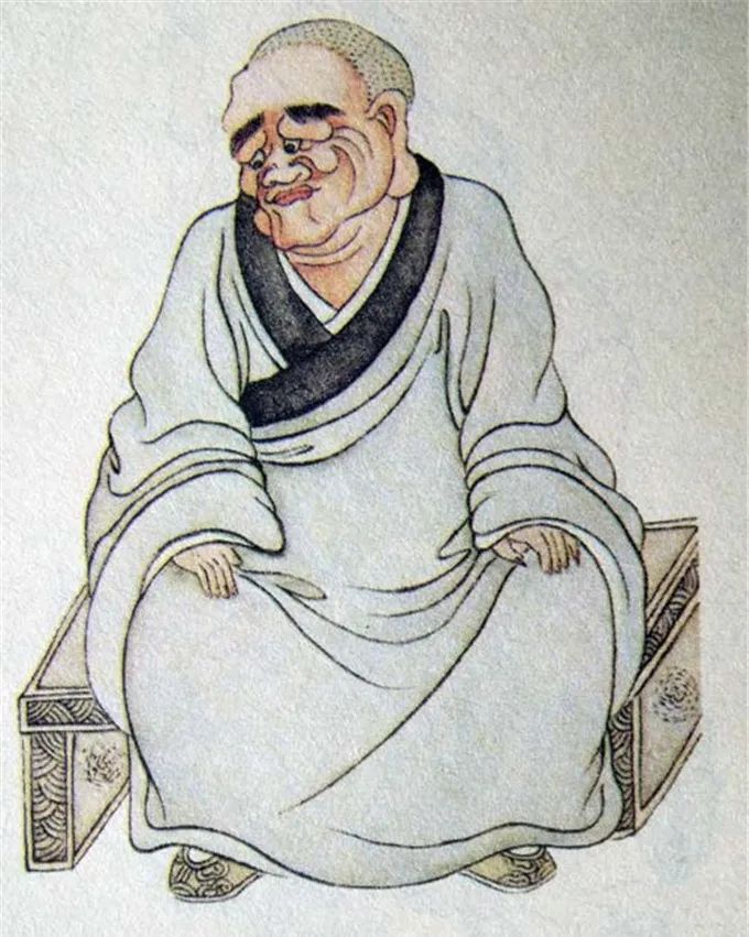 尊者法相所现为正面而坐,浓眉大耳,表情凝重,双手置膝。