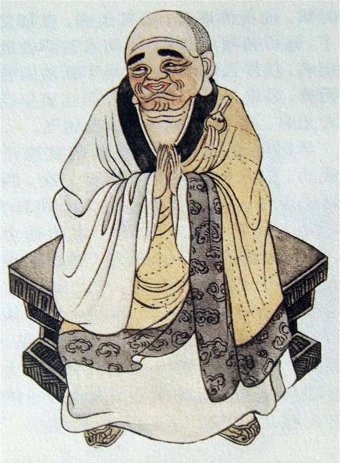 尊者法相所现为端身正坐,面露笑容,浓眉大耳,双手合十