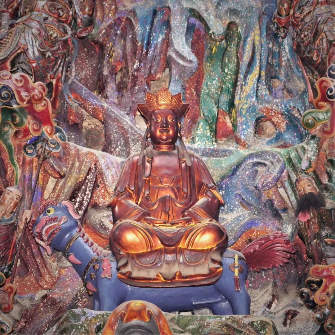 中国佛教寺院中的地藏王菩萨形象也很有特点,一般菩萨为头戴宝冠、身披天衣、璎珞装饰的天人相。而地藏王菩萨则多为光头或是头戴毗卢冠,身披袈裟的出家僧人之相。一手持锡杖,一手持莲花,或是手持幡幢、宝珠等。
