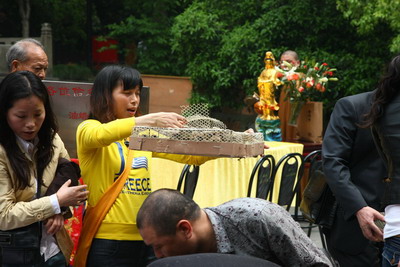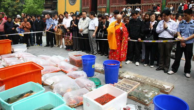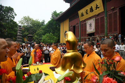 2011年5月6日(农历四月初四),是佛教四大菩萨之中专理智慧的文殊菩萨诞辰日,为弘扬和继承佛教慈悲护生精神,灵隐寺在大雄宝殿前举行了大型放生法会。