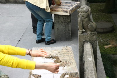 上午九点半,灵隐寺大众法师们在大雄宝殿前,慈悲地为即将获得新生的小生命们举行放生法会,并诵经回向法界一切有情众生。都监师父继云法师代监院光泉法师主持法会,虔诵佛经,持杨枝净水洒遍樊笼,以无边慈悲愿力加持这些能有幸听闻佛法的小动物们。周围的游客、信众、居士在法师们慈悲护生精神的感染下,也齐诵佛号,随喜赞叹放生功德。