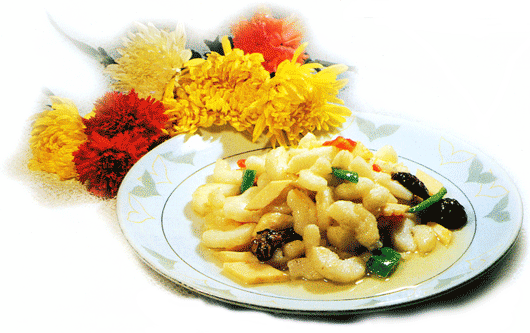 主料:主、配料: 山药200克,冬笋、青椒、水发香菇各50克。 调料:素油50克,芝麻油15克,精盐5克,味精5克,白糖15克,淀粉20克,清汤适量,姜丝5克。