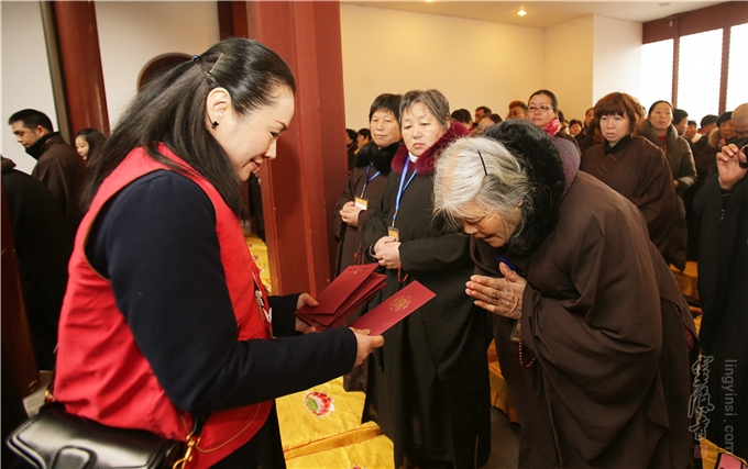 活动中,光泉法师以《药师琉璃光如来本愿功德经》法本与大众结缘,并为每一个居士准备了精美的新春福包,向广大居士善信传递着来自佛门的温暖祝福。