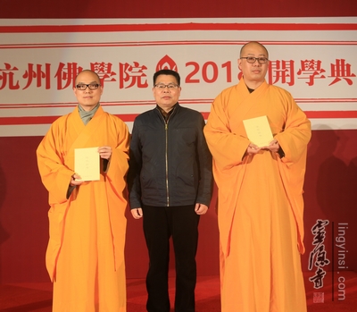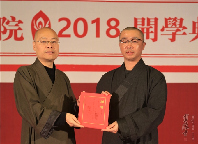 杭州佛学院副院长慧仁法师代表受聘法师、老师接受聘书