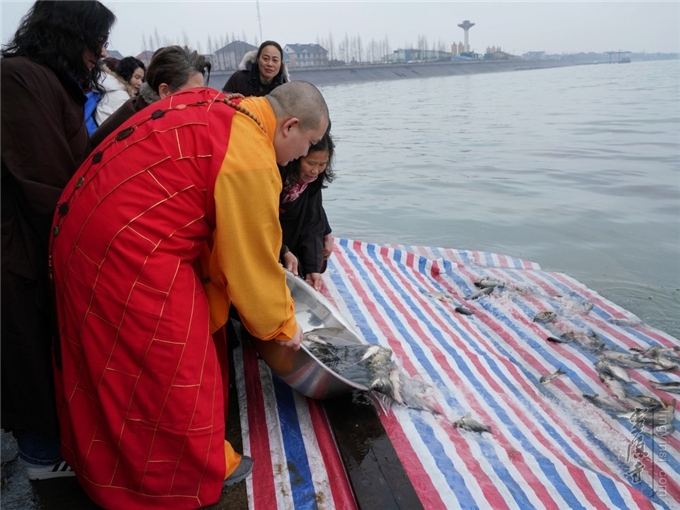 2018年3月7日,杭州灵隐寺依据佛教传统举行戊戌年新春放生祈福法会,灵隐寺常住法师、居士善信200余人参加了本次法会。30000余尾水族物命纳受三皈依,于钱塘碧波江水竞自由。
