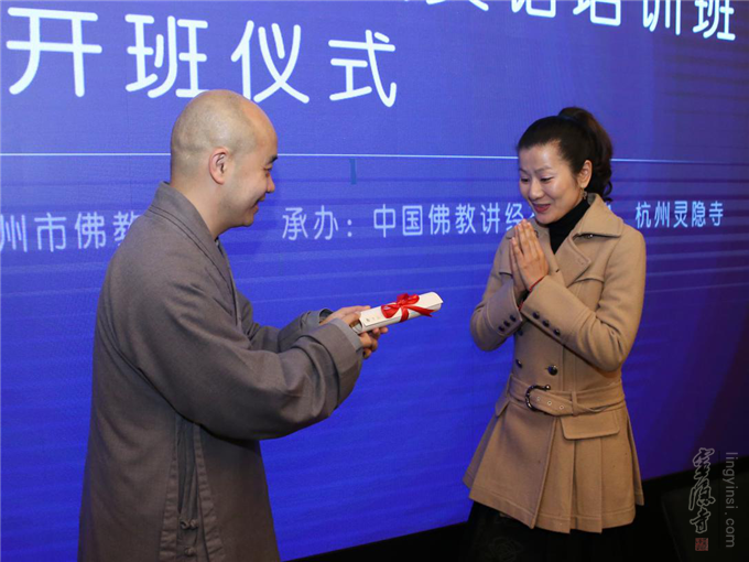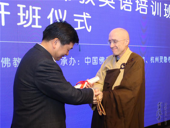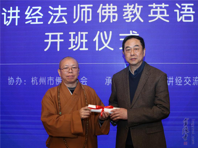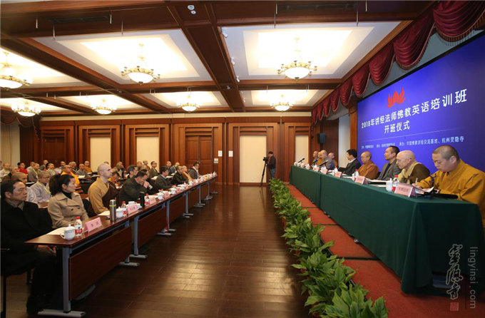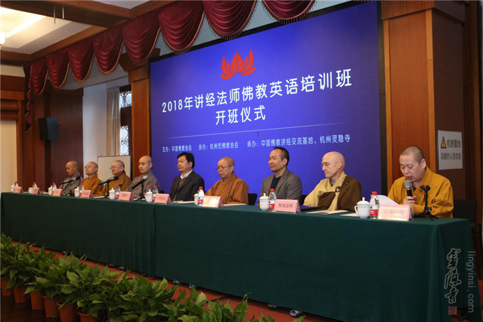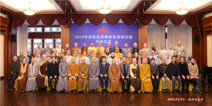 3月19日上午由中国佛教协会主办、杭州市佛教协会协办,中国佛教讲经交流基地和杭州灵隐寺承办的"2018讲经法师佛教英语培训班"在杭州灵隐寺开班。来自北京、广东、浙江等14个省市的50多位法师将在杭州完成为期一个月的佛教英语培训学业。