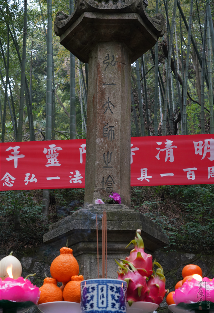 虎跑寺是弘一法师落发剃度之地。清明时节,灵隐寺法师居士与弘一法师塔墓前礼祭这位杰出的僧人代表,表达对一代律宗祖师大德的深切缅怀。