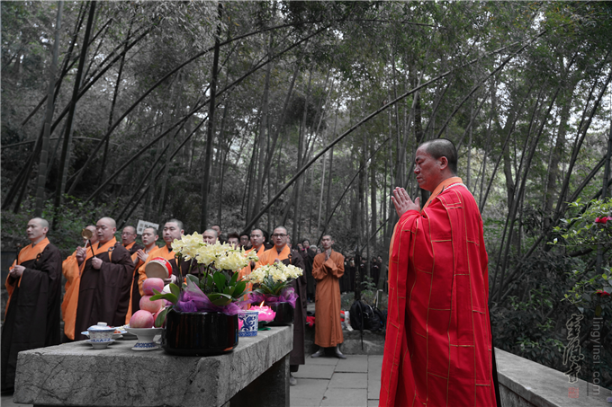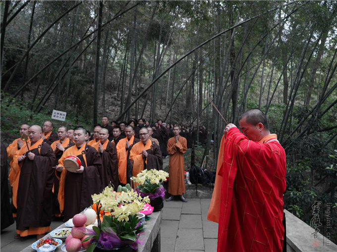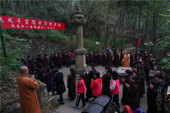 2018年4月5日,中国传统节日清明节,灵隐寺法师、居士举行礼祖法会,祭扫杭州虎跑弘一法师舍利塔墓,缅怀一代律宗高僧弘一法师的法乳深恩。