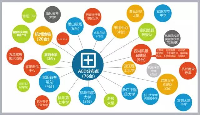 杭州云林公益基金会作为国内较早发起AED急救项目推广普及的公益机构,在2014年便开始在杭州试点安装15台AED设备,2017年6月杭州云林公益基金会联合杭州市急救中心、富阳区红十字会启动"云林心动计划",再次向杭州主城区捐赠61台AED,目前已累计捐赠投放AED设备76台,覆盖杭州地区人口密集的公共场所,例如机场、火车站、地铁、市民中心、客运中心、风景名胜区,以及杭州部分学校等公共场所。