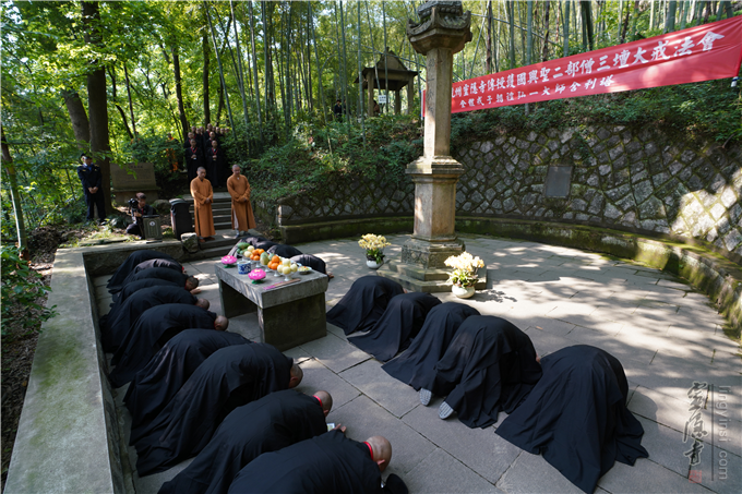 虎跑寺是弘一法师落发剃度之地,广大戒子祭扫弘一法师塔墓,表达对祖师大德的无限缅怀之情,同时也忆念感恩历代古德,弘演正法,千载传灯的甚深功德。灵隐寺方丈光泉大和尚希望以此,鼓励广大新戒,以戒为师,立志高远,弘法利生,广行接引,以饱满的修学热情,不负历代祖师大德的期望,荷担如来家业,为普度众生,服务社会做出应有的贡献。