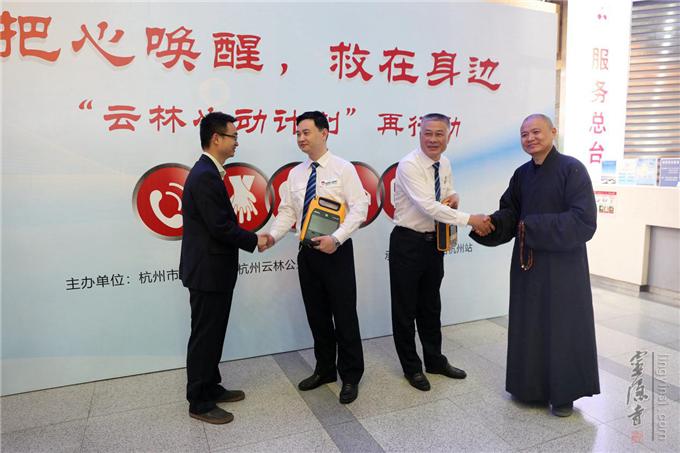 云林公益基金会理事长常法法师在现场呼吁大家都要学会这些急救技能,在第一时间,自救互救,做到"我救人人,人人救我"。同时表示:"云林公益基金会将继续致力于推进AED和急救技能的的公众普及,愿和大家一起努力,尊重生命,敬畏生命,让杭城永远保持‘心动’。"