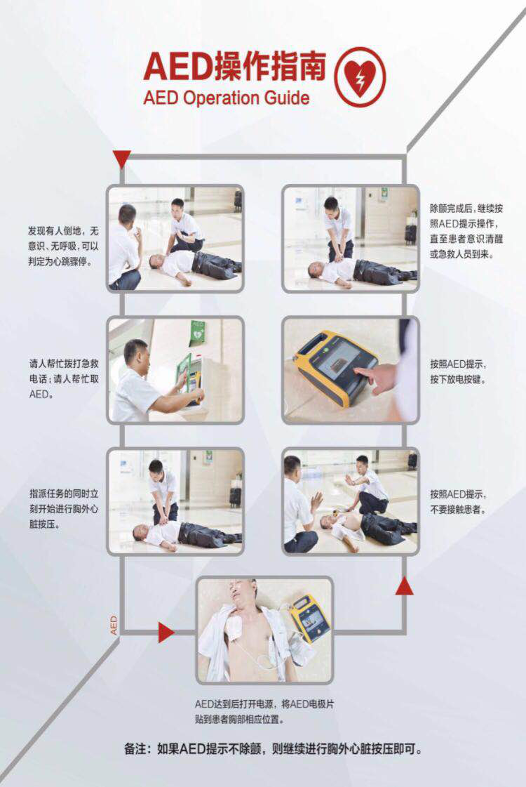 接下来,请搬好小板凳,准备接收干货!一起看看究竟如何使用AED吧~~~废话不多说,请看下图: