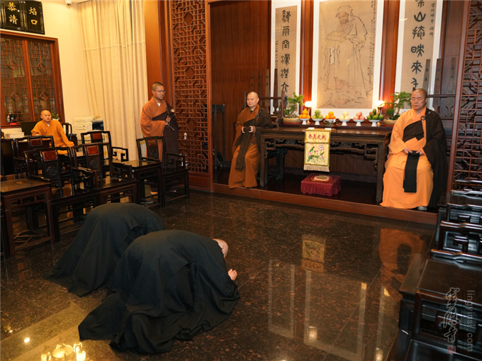 新戒代表前往客堂迎请义广法师、常法法师