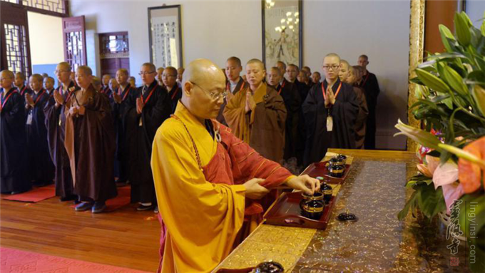 在谈到修行之路时,大和尚嘱咐大家要"惜福"、"习劳"、"以戒为师"。如果能切实在生活中做到这些,此生定有大成就。他深情地和大家一起缅怀了第十一代南山律宗之祖弘一大师的生平。100年前在弘一大师杭州灵隐寺受戒。弘一大师才华盖世,超然脱俗。出家后粗衣淡饭,甘之如饴;破衲敝席,数十年不换;救生护生,惠及细微;心无旁骛,穷毕生精力,矢志复兴南山律宗。弘一大师持戒精严,是我们学习的榜样。