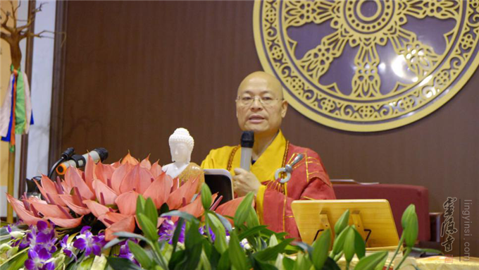 光泉大和尚来到法堂,他首先恭喜各位戒子得此殊胜受戒因缘,鼓励大家把握机会,不忘初心,荷担如来家业。