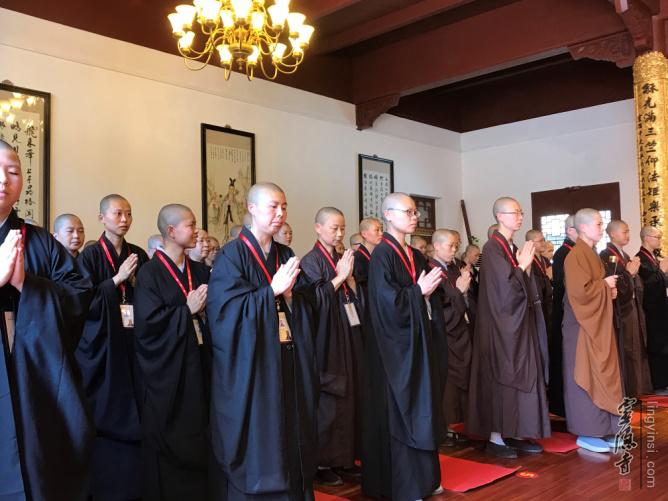 在开示中,光泉大和尚从初发心的重要性谈起,鼓励大家发勇猛心、长远心、觉悟心、大菩提心,真正身出家心也出家,作真佛子。光泉大和尚说:我们要呵护自己的初发心,永远怀着这颗初发心,勇敢地担负起当代僧人的历史使命。