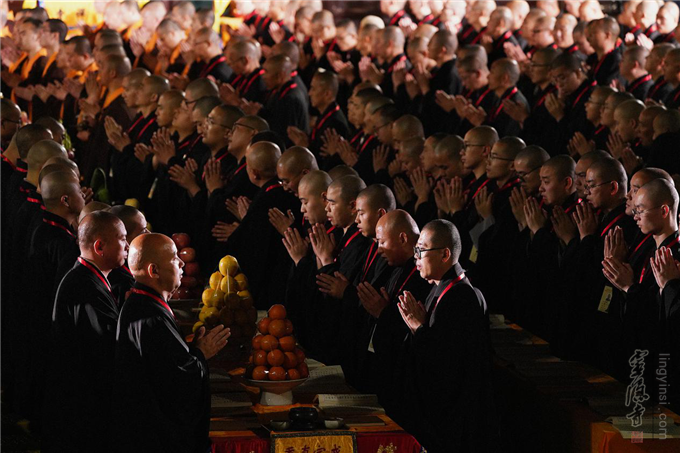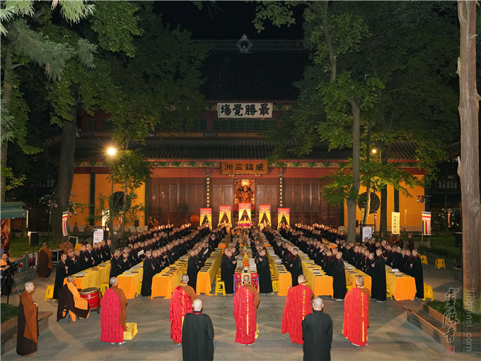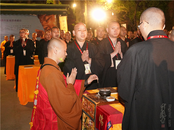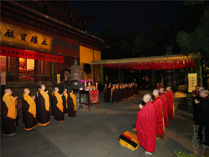 2018年4月27日(农历三月初十二日),"戊戌春灵隐寺三坛大戒法会"第三天。晚上,五大士瑜伽焰口在大雄宝殿前广场隆重举行。