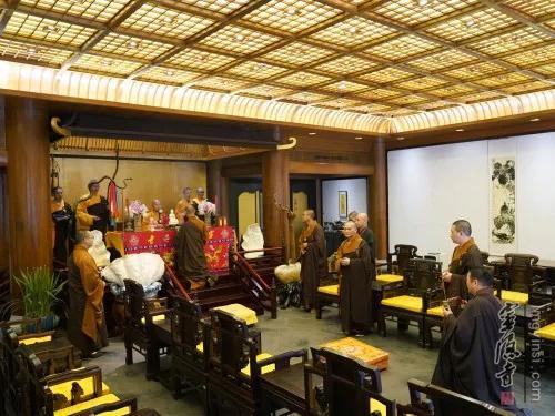 午时许,杭州护法居士发心,设上堂斋供养三宝,并迎请得戒大和尚灵隐寺方丈光泉大和尚主法,以此功德回向法界众生,福慧双增,离苦得乐,长养慈悲之心,开启自身法身慧命。