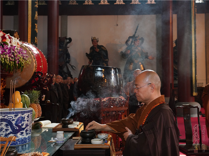 得戒和尚光泉律师步入药师殿后拈香礼佛