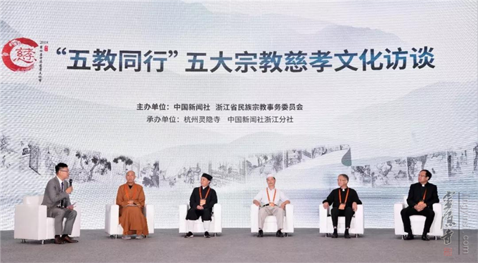 慈孝是中华文化的核心,也是宗教文化的通义。活动还举行了五大宗教慈孝文化访谈。来自佛教、道教、伊斯兰教、天主教、基督教五大宗教代表从各自角度阐述了中华慈孝文化的共通性与普世价值。