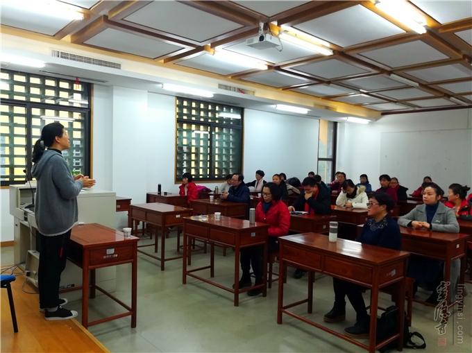 1月9日上午,40多位由云林书院培训的"身心健康不倒翁运动"辅导员,来到杭州佛学院参与了年度联谊活动。书院朱素英老师总结了年度不倒翁运动的开展情况,以及2019年的运动推广计划。