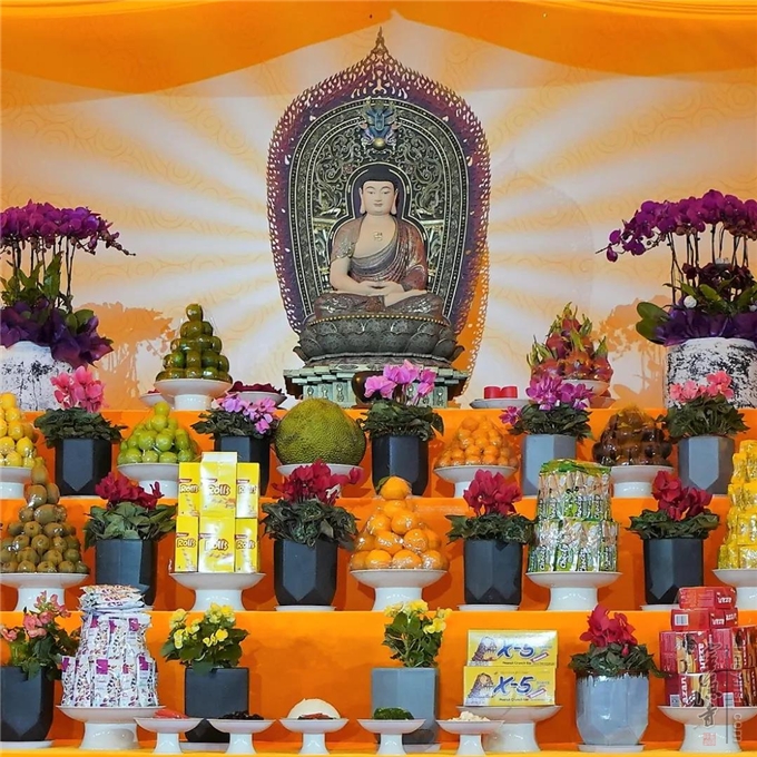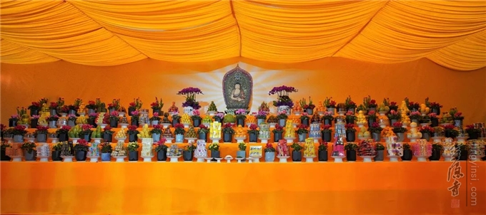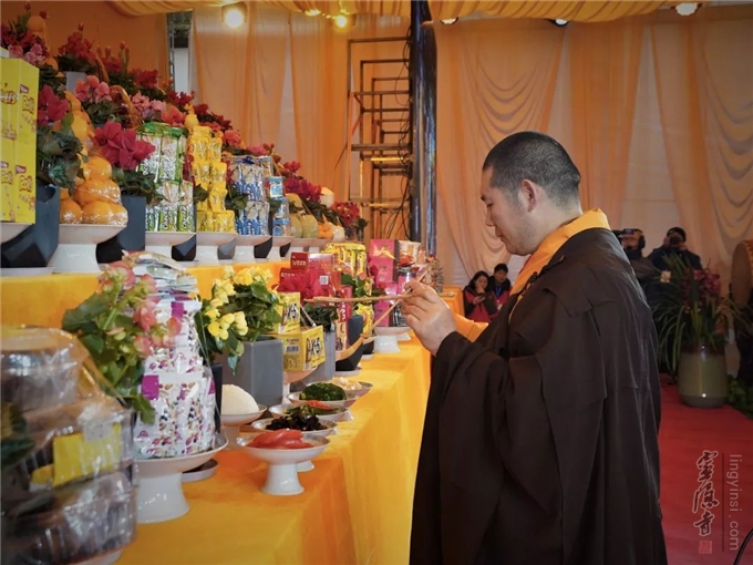 众人以传供方式感恩佛陀、感恩三宝,同时祈愿佛日增辉、法轮常转、世界和平、海众安和。