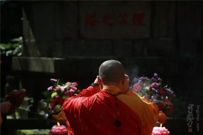 灵隐寺监院智光法师在理公塔前拈香主法