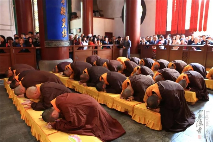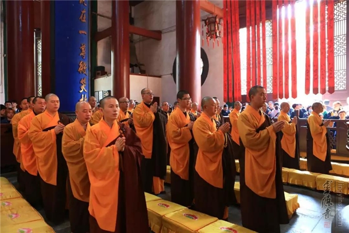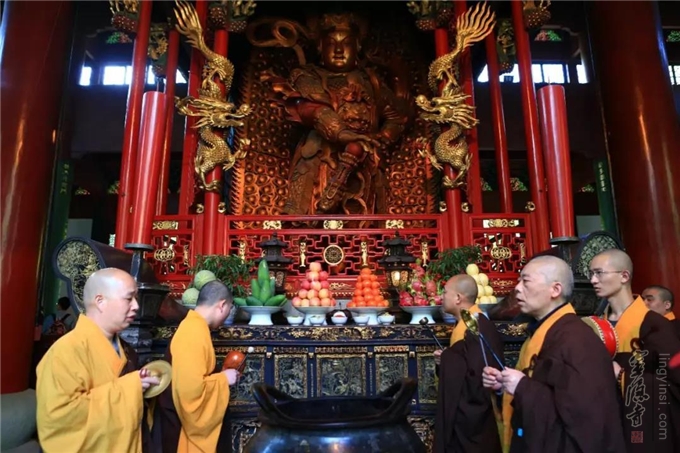 2019年4月5日(己亥农历三月初一),适逢清明节。 上午九点十五分,杭州灵隐寺在大雄宝殿举行清明追思祭祖上供法会。