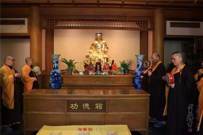 在伽蓝殿伽蓝菩萨圣像前上供