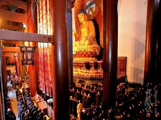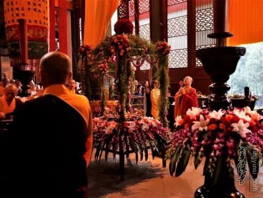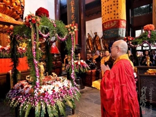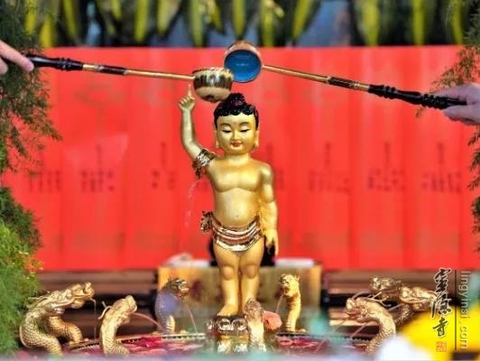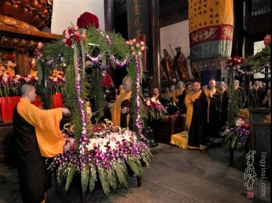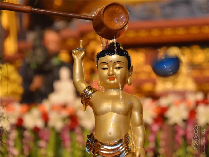 杭州灵隐寺己亥佛诞日浴佛法会,依祖制按排班出迎、恭迎释迦太子圣像、安座沐浴、祝圣赞佛、回向皈依等仪轨进行。
