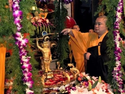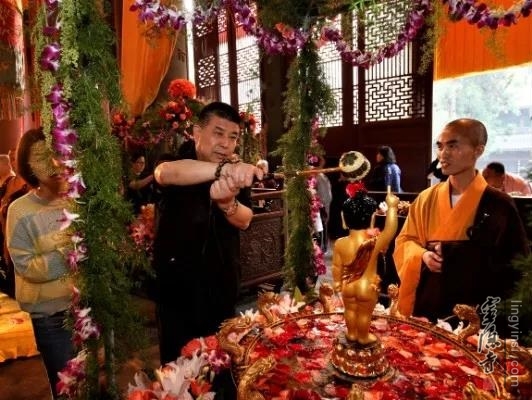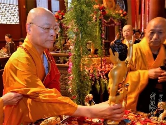 杭州市佛教协会会长、杭州灵隐寺方丈光泉大和尚主法,四众弟子共同沐浴释迦牟尼太子金身,求佛加持,以期净化身心,发无上菩提大愿!